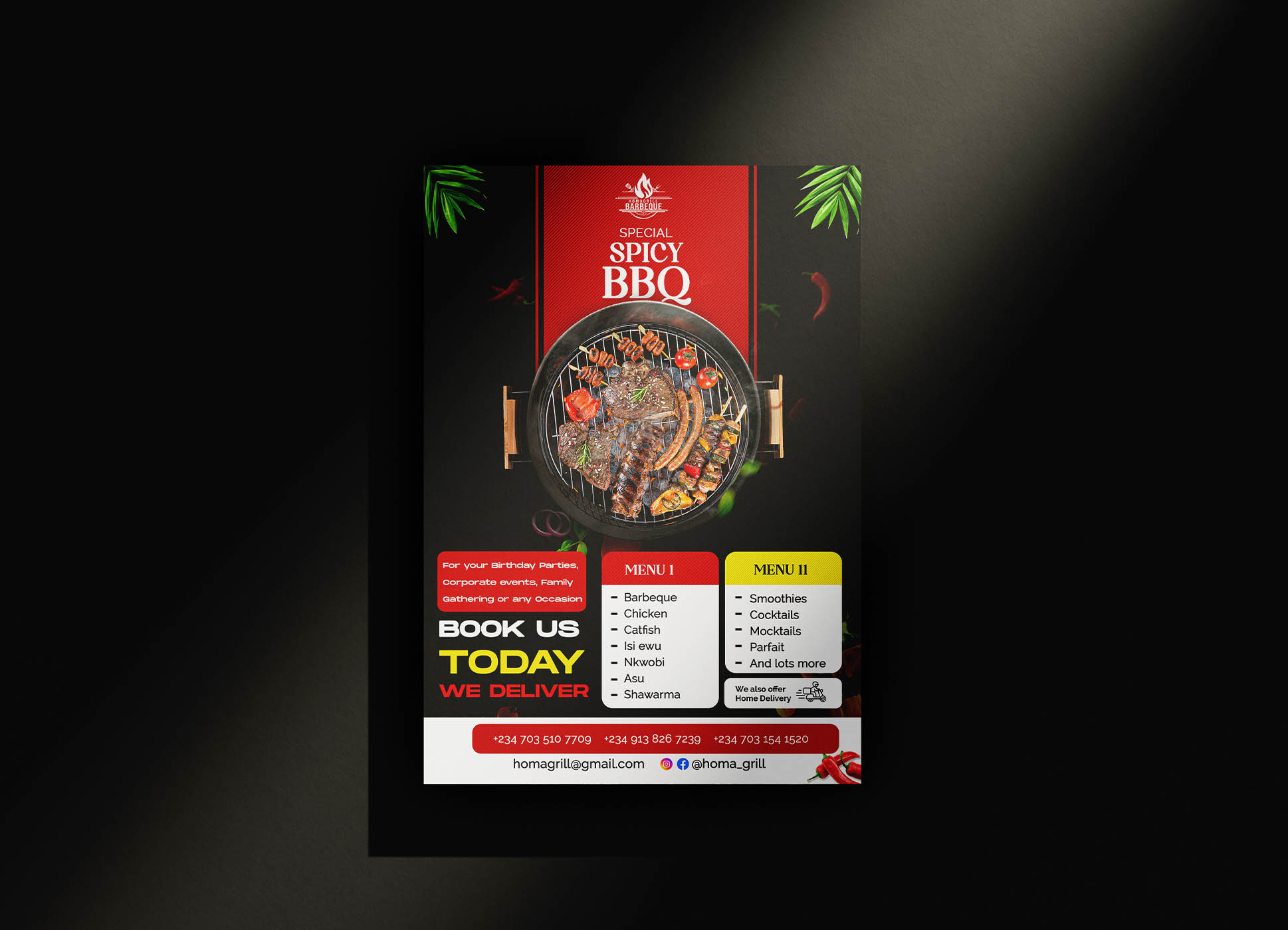 The sales poster significantly improved Homagrill BBQ’s brand visibility and helped build customer trust. As a result, online engagement increased, event bookings grew, and home delivery orders rose, positioning Homagrill BBQ as a go-to choice for grilled meals despite lacking a physical restaurant.